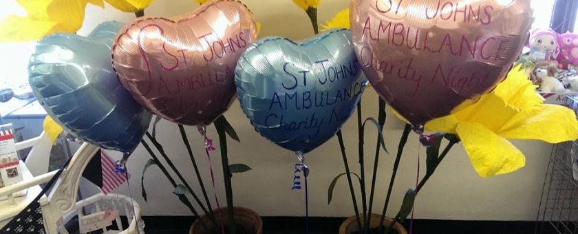 St John’s ambulance Charity Personalised balloons for St John’s ambulance Charity night Donated by us.
